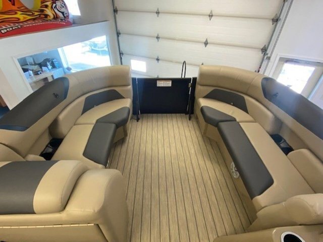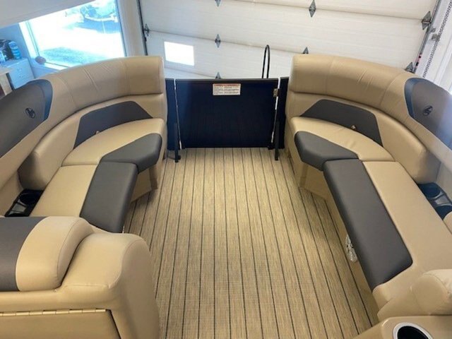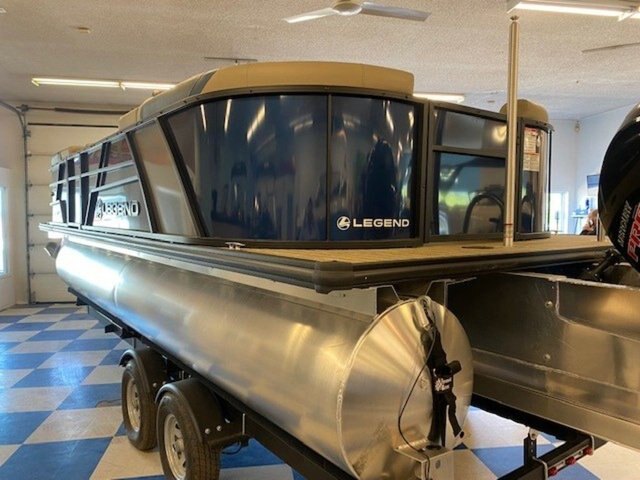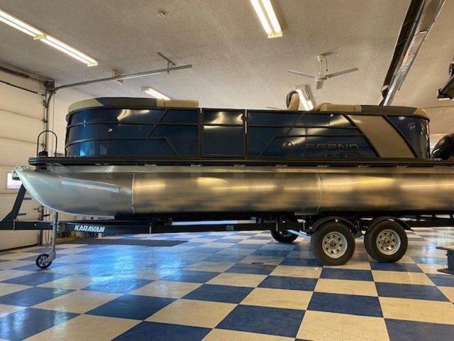 2022 Legend Boats E-Series 23 Lounge Triple-Tube Room for the Whole Crew The E-Series 23 Lounge is positively crammed with seating space. Seat up to twelve people between four lounging sofas and two swivel captains seats. Features may include: Extra-large bimini top w/ 1 1/4 anodized aluminum frame Interior courtesy light Removable Oval table w/ integrated drink holders Navigational and bimini-mounted anchor lights Integrated changeroom Built-in fuel tank - 113 L Construction Large 25\'\' diameter .090 gauge pontoon tubes Full-length protective extruded keels on tubes 4 deck-mounted lift and mooring cleats Extra-wide 8\'6\'\' beam Individually treated 3/4\'\' 7-ply marine-grade plywood Through-bolted floor fasteners and double-sealed seams 1 1/4 raised aluminum fence rails w/ 3/8 risers 3 Gates w/ posi-lock latches EZ-access rear gate Anti-vibration foam-backed quiet fencing Performance-enhancing all-aluminum V-transom Pressurized triple-section tube design w/ EZ-drain plug Plush Soft-Step DuraWeave Luxury vinyl EZ-Clean flooring Tough shark-nosed cones w/ spray-deflecting fins Console Deluxe dash w/ chrome-bezeled gauges Horn Illuminated switches and gauges Molded fibreglass console base w/ cooler storage Seating Roto-cast furniture bases w/ drains and storage Deluxe captains chair with armrests and slider Deluxe captains chair with armrests and slider Deluxe passenger\'s chair witjh armrests and slider 2 front rounded couches for comfy lounging Chaise lounges w/ integrated storage 360º surround seating w/ 4 chaise lounge couches Decks and Storage Drink holders EZ-Clean Rear Fun Zone for watersports and entertaining