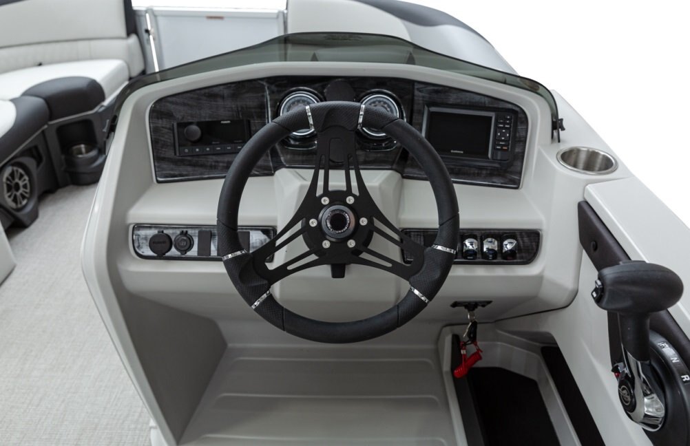 Console Ez-reset circuit breakers Illuminated gauges Garmin 52CV Canadian Courtesy Light 12V Power Plug Mercury SmartCraft Gauges Windshield Mechanical Tilt Steering Silver Console Crew Rotocast Console Crew Greywood Dash Panel Ontario Steering Wheel