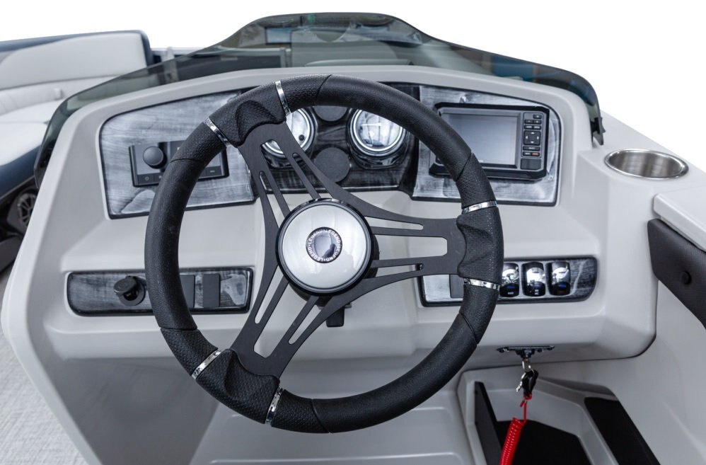 Console Ez-reset circuit breakers Illuminated gauges Garmin 52CV Canadian Courtesy Light 12V Power Plug Mercury SmartCraft Gauges Windshield Mechanical Tilt Steering Silver Console Crew Rotocast Console Crew Greywood Dash Panel Ontario Steering Wheel