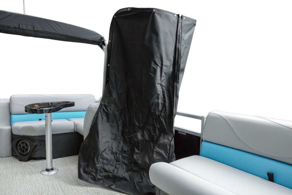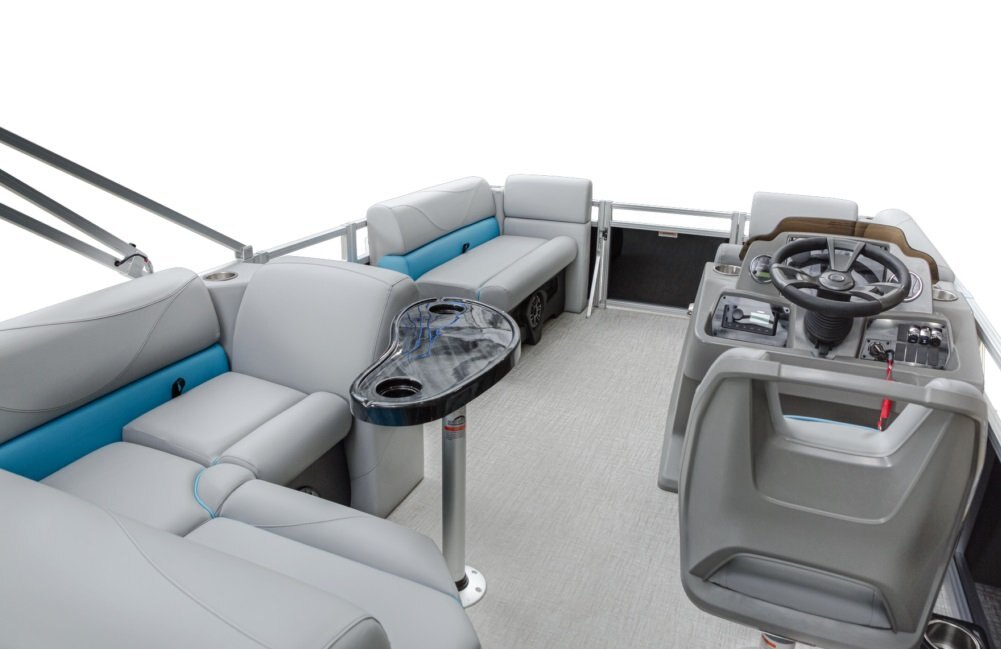 Decks and Storage Stainless cup holders Bow USB Charging Port Bow USB Charging Port Riptide Shadow Flooring Polished Corner Caps 4 U Bolt and Cleat Combo Small Greywood Kidney Table w/ Base Small Greywood Kidney Table w/ Base Charcoal Cladding Heavy Duty Rub Rail with w/Insert Privacy Station in Privacy Arm