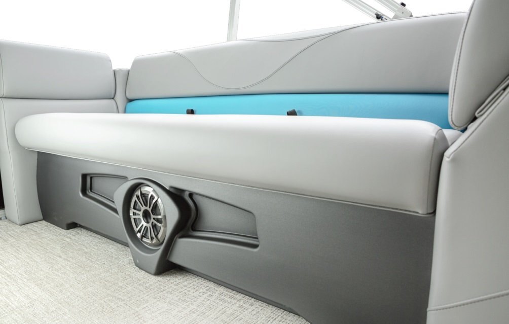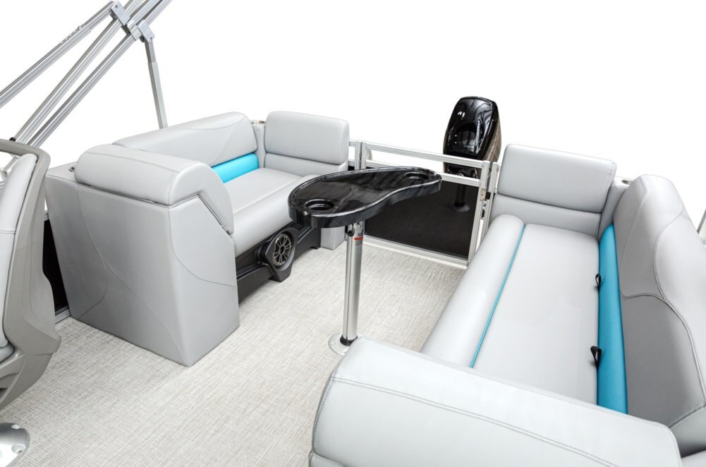 Decks and Storage Stainless cup holders Bow USB Charging Port Bow USB Charging Port Riptide Shadow Flooring Polished Corner Caps 4 U Bolt and Cleat Combo Small Greywood Kidney Table w/ Base Small Greywood Kidney Table w/ Base Charcoal Cladding Heavy Duty Rub Rail with w/Insert Privacy Station in Privacy Arm