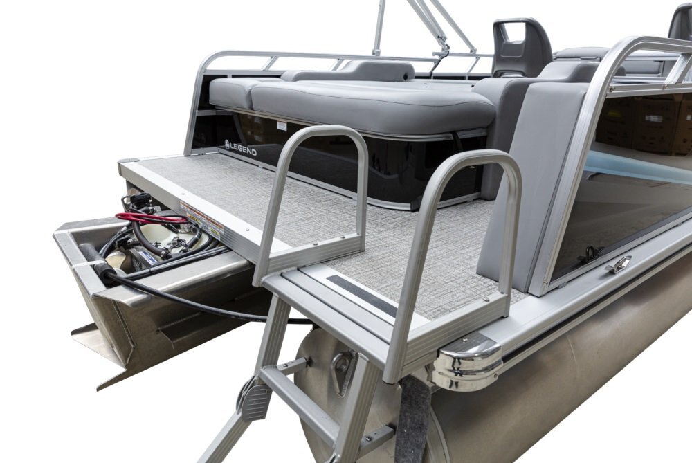 Construction 4 deck-mounted lift and mooring cleats Through-bolted floor fasteners and double-sealed seams Anti-vibration foam-backed quiet fencing Tough shark-nosed cones with spray-deflecting fins Performance-enhancing all-aluminum v-transom 8’ beam Pressurized triple-section tube design with ez-drain plug Full-length protective extruded keels on tubes Individually treated 3/4" 7-ply marine-grade plywood 1 1/4” raised aluminum fence rails with 3/8” risers 23" diameter .090 gauge pontoon tubes Vinyl non-skid strips for entry gates Easy access bow, port side and stern gates 25 Gallon Direct Fill in Mount Fire Extinguisher 20 Ft Tubes Aluminum Ladder Aluminum Ladder