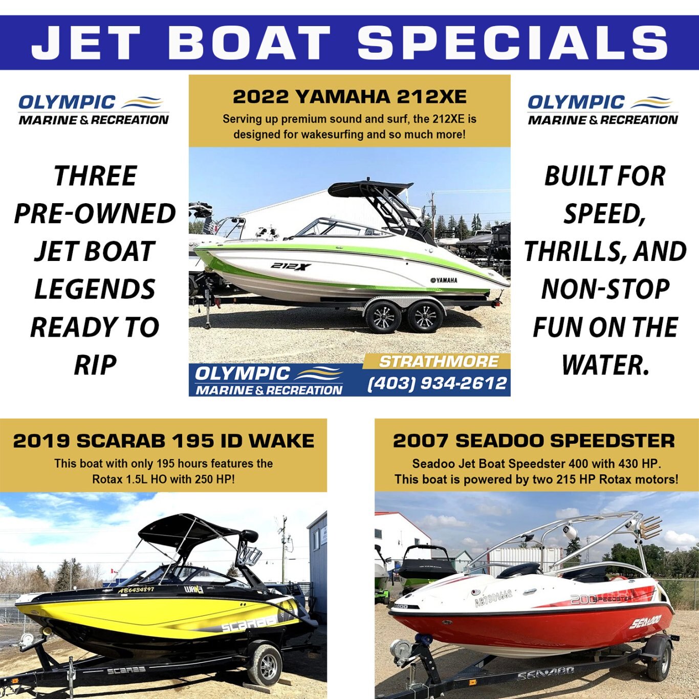 Looking for speed, style, and summer thrills? We've got three pre-owned jet boat legends ready to rip at Olympic Marine & Recreation – Strathmore: