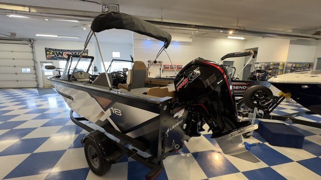 2023 Legend Boats X18A family time superhero. You wont need a phone booth to transform this comfy cruising craft into a fully-featured fishing machine. Hidden beneath the bow cushions, contoured backrest and flipping rear bench, youll find dual livewells, huge casting decks and plenty of storage for all of your gear. Features may include: Construction .100 gauge super-thick two-piece alum. Hull construction 17º deep-v hull w/ hard chines Injected and level foam floatation Stainless steel transom and bow eyes Treated 7-ply marine-grade plywood floor and decks Large and practical slip-resistant side decks Torsion beam energy transfer system Console Deluxe command-vu console w/ integrated drink holder Deluxe passenger console w/ integrated cool box Speedometer, voltmeter, fuel gauge, tachometer Ez reset circuit breakers Illuminated switches and gauges High profile clear-curved walk-through windshield Horn Livewell(s) Bow livewell - aerated - 72 L Stern livewell - aerated - 45 L Threaded sure-lock stand pipe w/ overflow protection Seating Ez-fold extenda-deck converta-bench 4 on the floor seat base configuration Removable ergomax swivel chairs - 2 Decks and Storage Large front casting deck w/ oversized storage Large rear casting deck w/ seat mount and storage Port and starboard integral lockable rod boxes - 7\' Perko t-handle flush locks Rear battery storage area 7 drink holders Lockable in-floor rod locker w/ tube holders for 6 rods Additional 6 mooring cleats or handles Removable navigation and anchor lights Pre-wired for electric trolling motor Built-in fuel tank - 95 L Ez-clean dura-deck vinyl floor and marine carpet Automatic bilge pump Interior courtesy lights