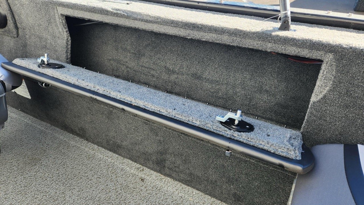 Fishing friendly: Bow livewell (114 L aerated) – a large casting deck area in the bow, lockable in-floor rod locker with tube holders for 6 rods, large storage compartments.
