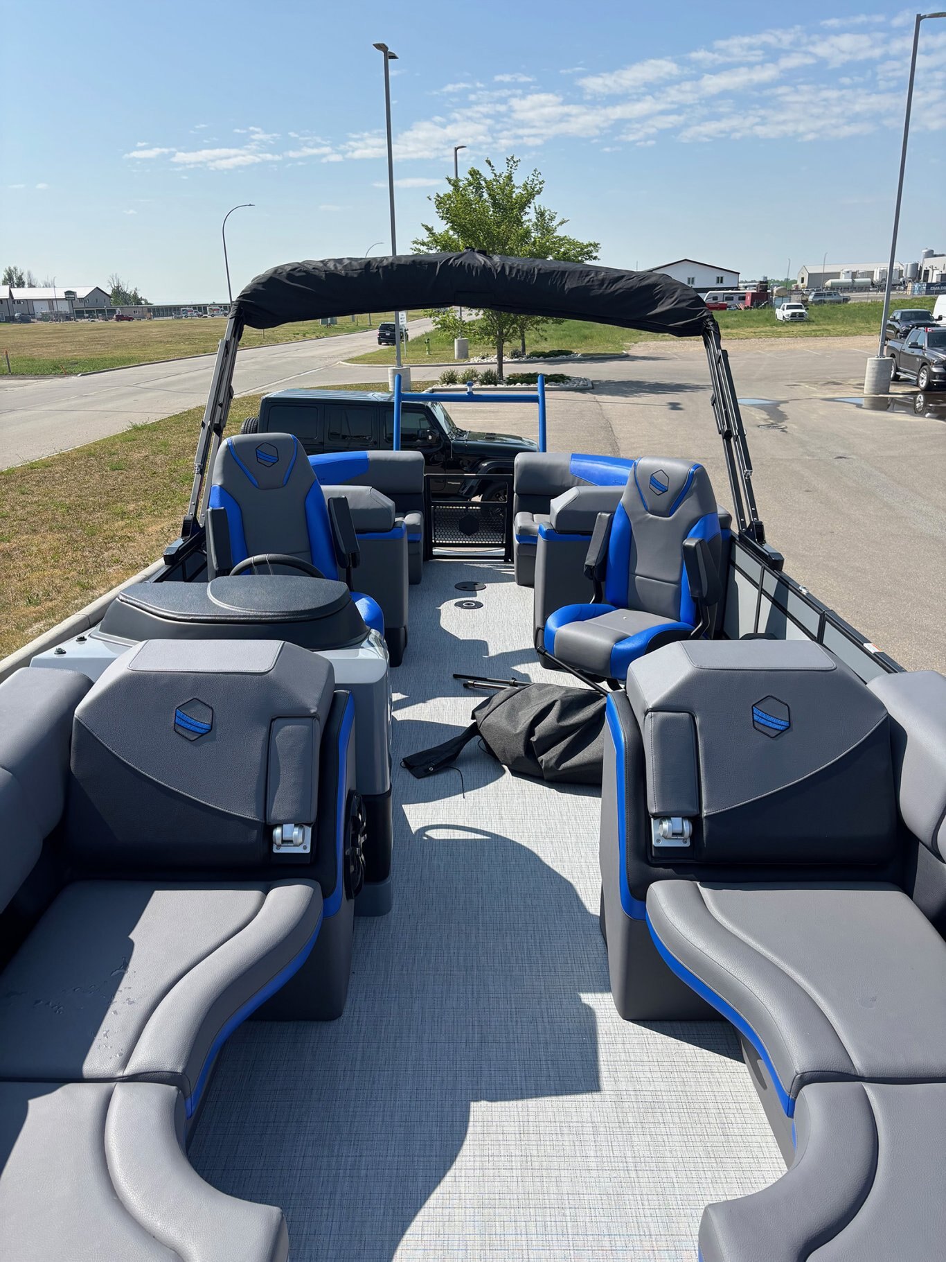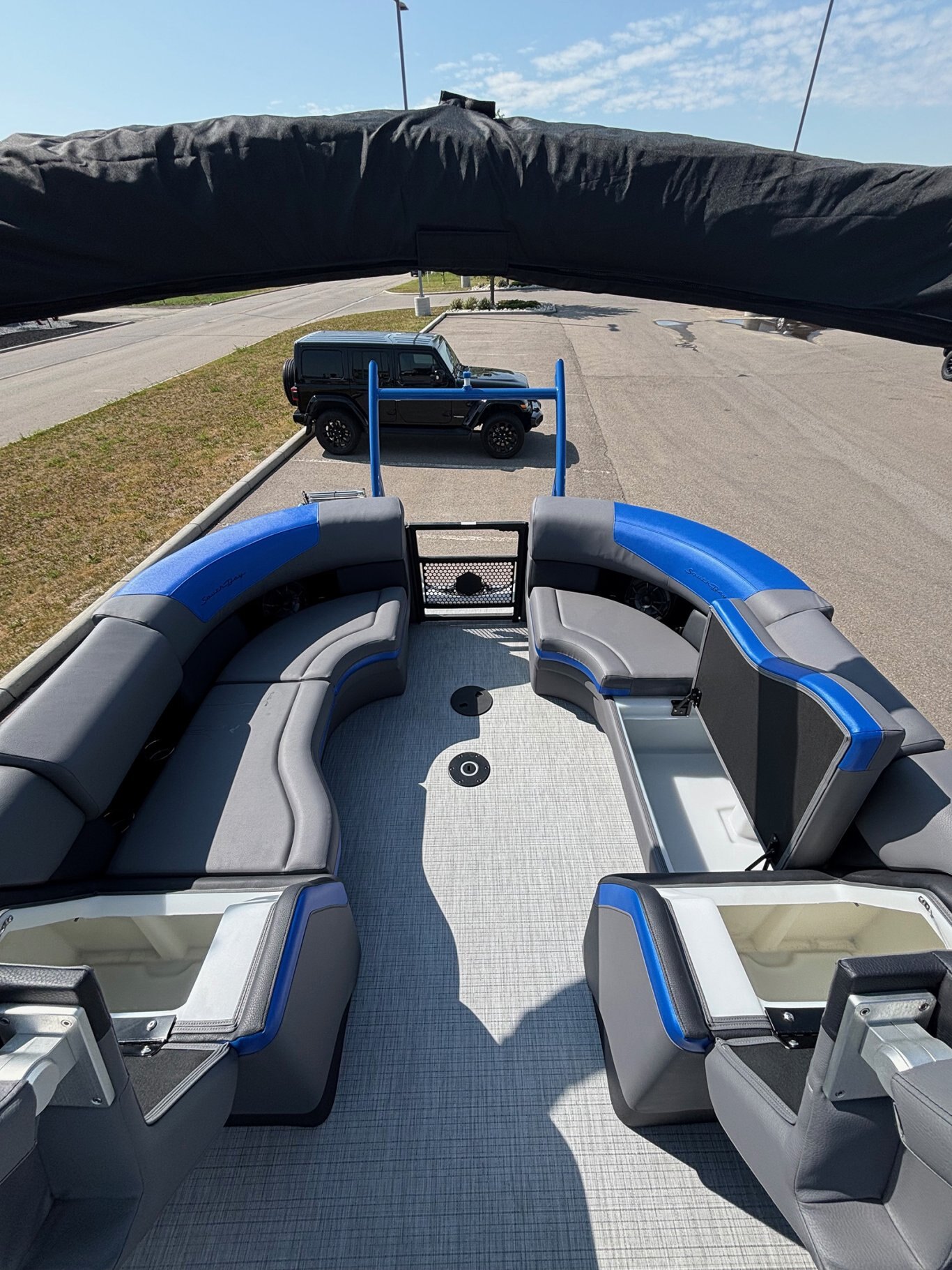 Designed with bold style and premium craftsmanship, this performance tritoon delivers a smooth, commanding ride with striking modern lines and high-end finishes throughout. Featuring plush, ergonomic seating, cutting-edge technology at the helm, and an upgraded audio and lighting package, the 523 RS3 offers the perfect blend of comfort, class, and capability for days on the water. Whether you're entertaining, cruising, or watersporting, the 523 RS3 is built to impress.